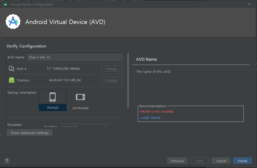 4.화면은 가로로 할지 세로로 할지, 네트워크 설정은 어떻게할지 등등 설정하기